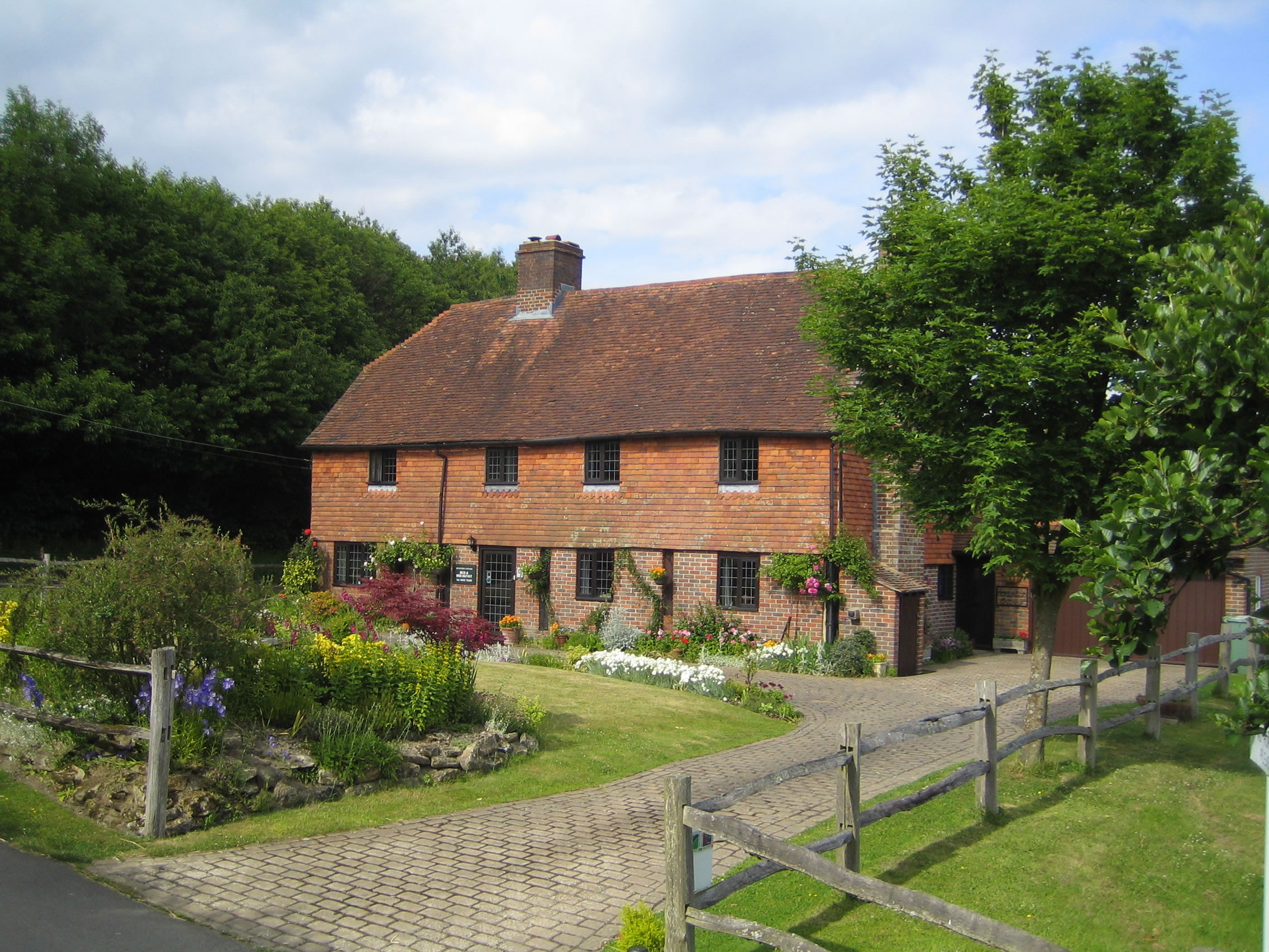 Situated about a mile from the village of Brenchley, near Tunbridge Wells, with its picturesque old timbered houses and All Saints Church built in 1233 with its 400 year old yew trees. The cottage is at the end of a quiet lane, surrounded by apple orchards and has outstanding views looking towards the Furnace Pond, Horsmonden and Goudhurst.